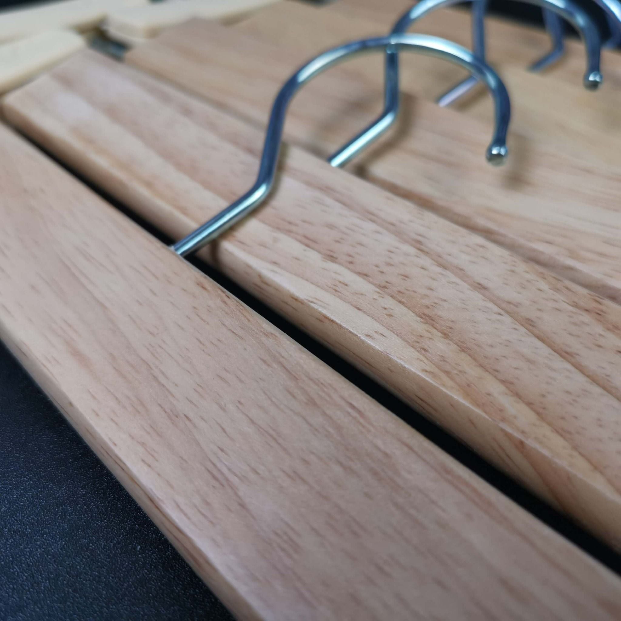 ✅Móc gỗ treo quần áo được sản xuất từ gỗ cao su tự nhiên, đầu móc kim loại 3.5, qua các quy trình xử lý công nghiệp và sơn chống xước, vừa có độ bền chắc, không mối mọt, rỉ sét, vừa đảm bảo tính thẩm mỹ cao.