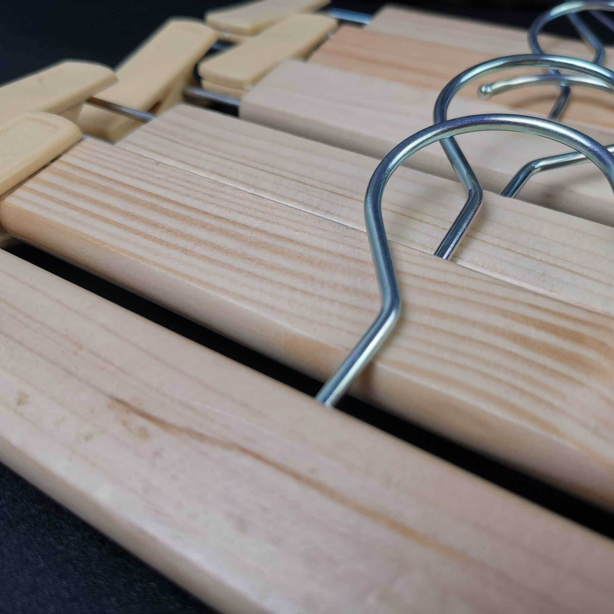 ✅Móc gỗ treo quần áo được sản xuất từ gỗ thông su tự nhiên, đầu móc kim loại 3.5, qua các quy trình xử lý công nghiệp và sơn chống xước, vừa có độ bền chắc, không mối mọt, rỉ sét, vừa đảm bảo tính thẩm mỹ cao.